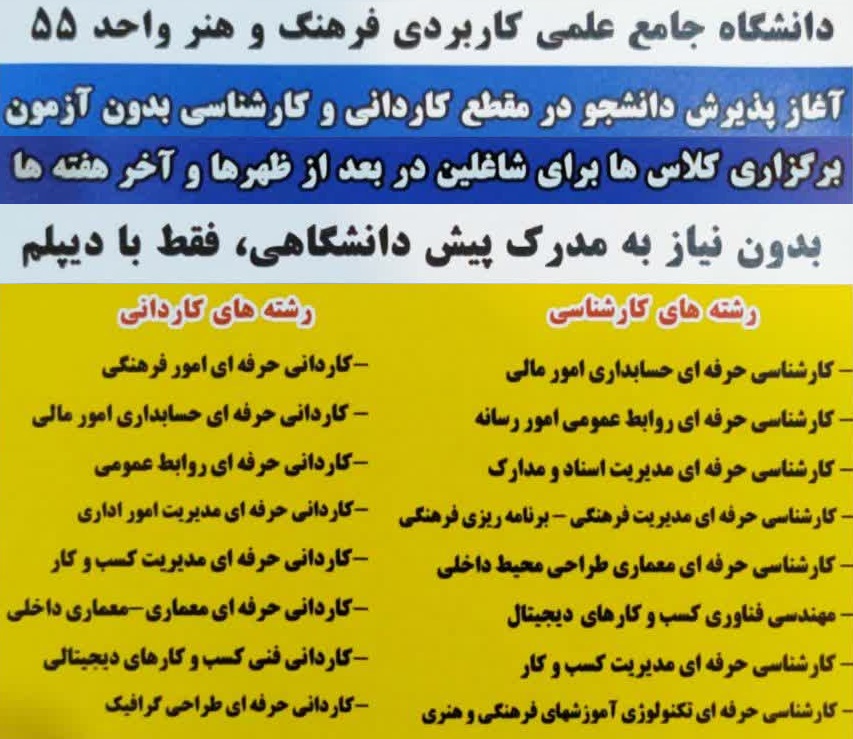 پذیرش دانشجو مقاطع کارشناسی و کاردانی (تهران، میدان ولیعصر، کوچه صدف)